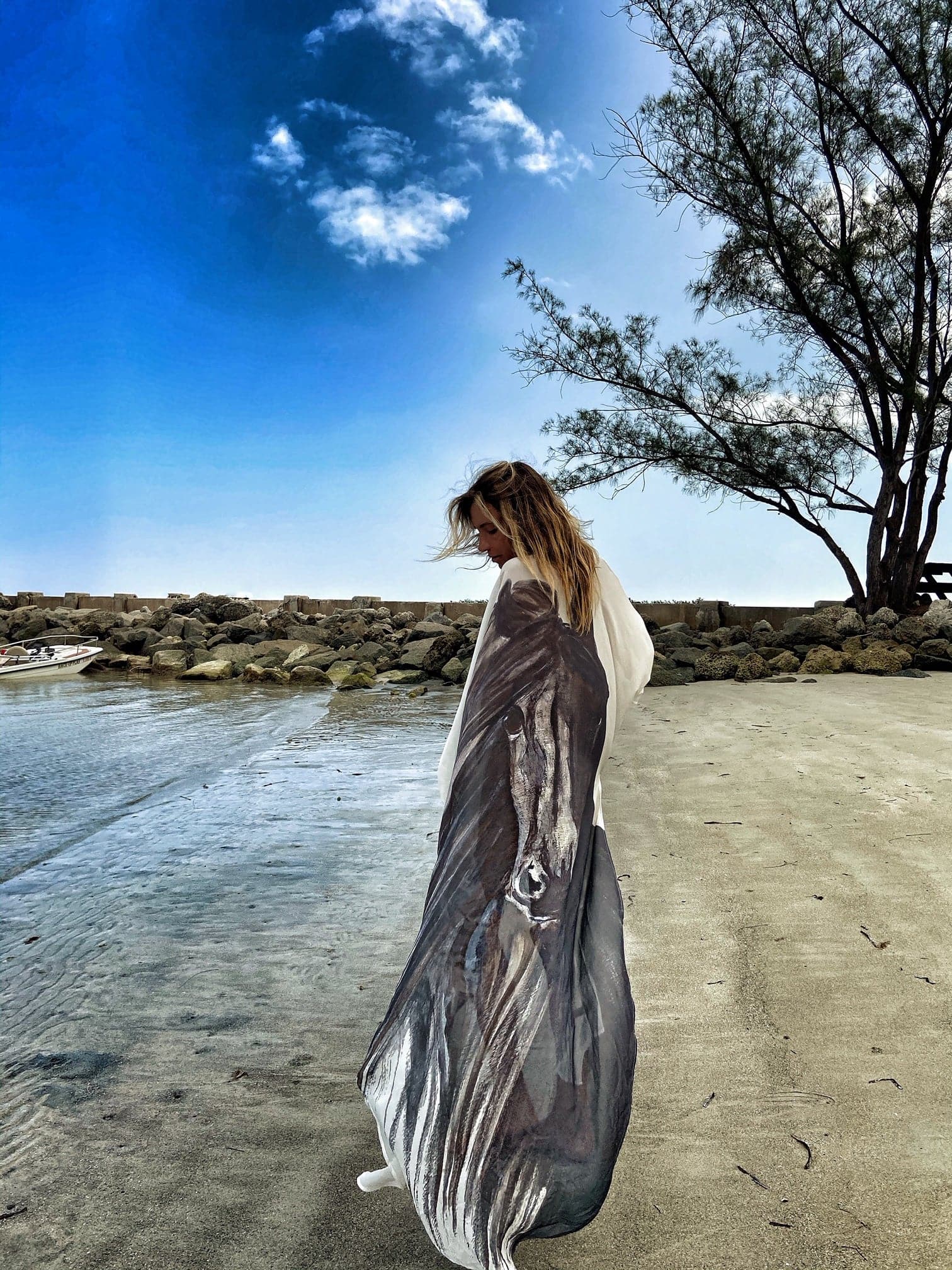 The Erte Kaftan Horse is the kaftan of ‘101 options to wear’. Tie up the front for a shirt, wear over your favorite swimsuit, dress, shorts or pants. The horse print was inspired by Arianne’s memories of living in Spain on a hacienda with horses her family bred.