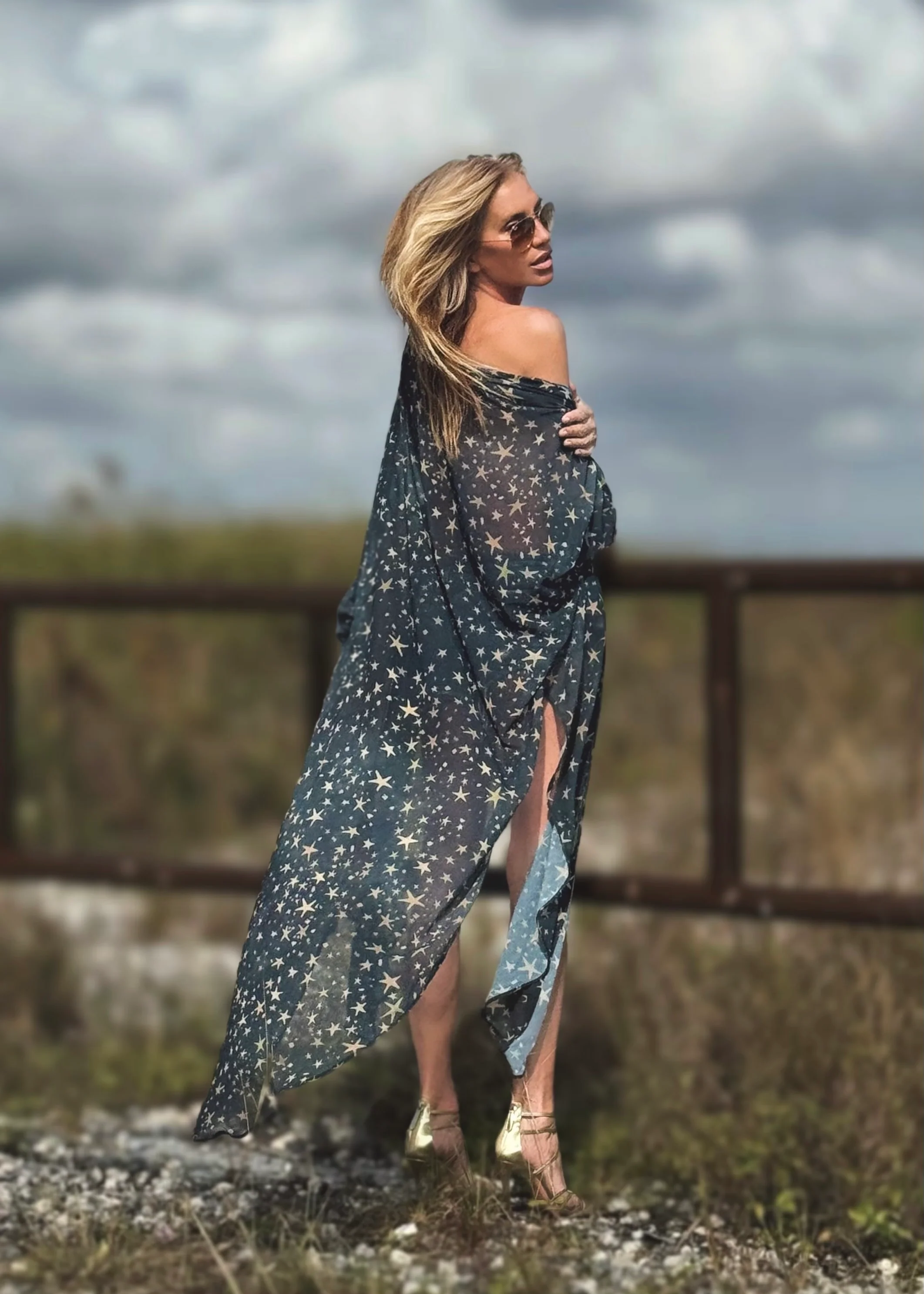 Elevate your style with the Erte Kaftan Midnight stars, a piece with endless possibilities. From tying it up as a shirt, using it as a chic cover-up for your swimsuit, to pairing it with a dress, shorts, or pants, this kaftan adds a touch of luxury to any look.
