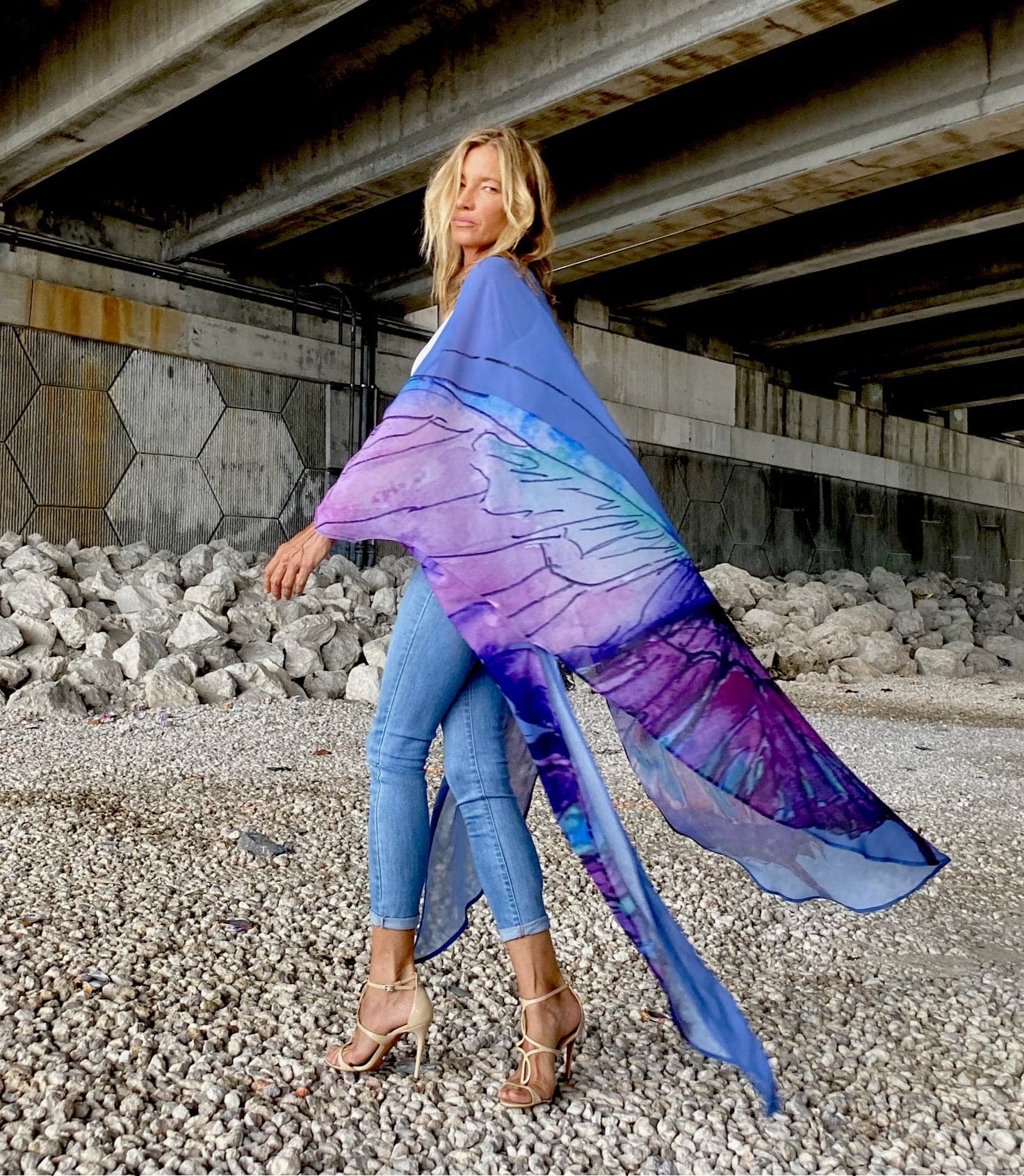 Enhance your wardrobe with our Erte Kaftan Mariposa (butterfly in Spanish) This versatile piece can be effortlessly styled over your bikini, dress, shorts, or pants, tied in the front for a chic and sophisticated look.