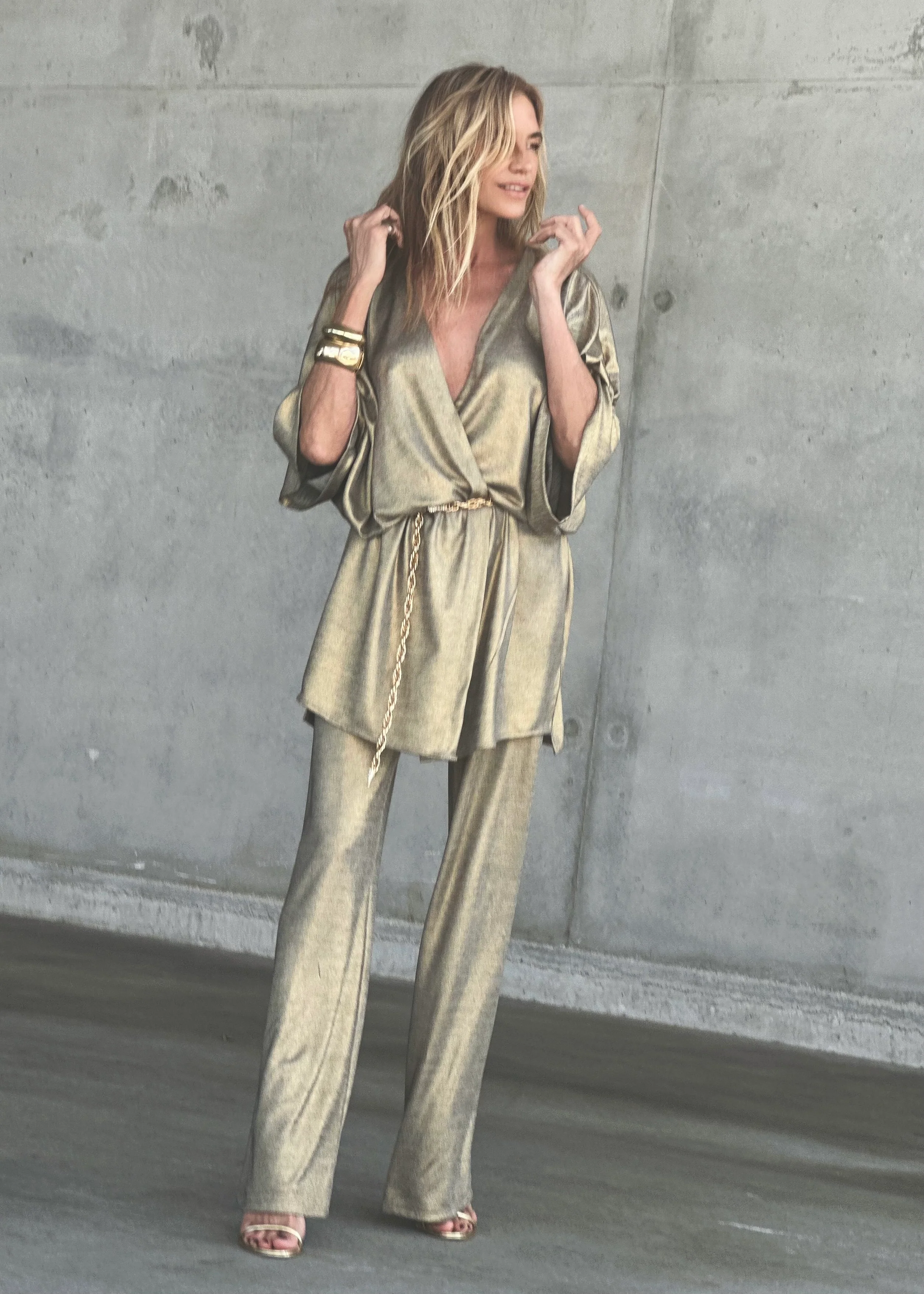 Dare to make a statement this season with the Kate Wrap Dress in Vintage Gold—a limited edition piece that refuses to play it safe. This bold wrap design adapts to your style, whether you cinch it with the included sash or swap in your own belt for an edgier vibe. Layer it with our matching Vintage Gold Mandy Pants for an unapologetically luxe combination that turns heads. A fearless essential for women who know what they want.